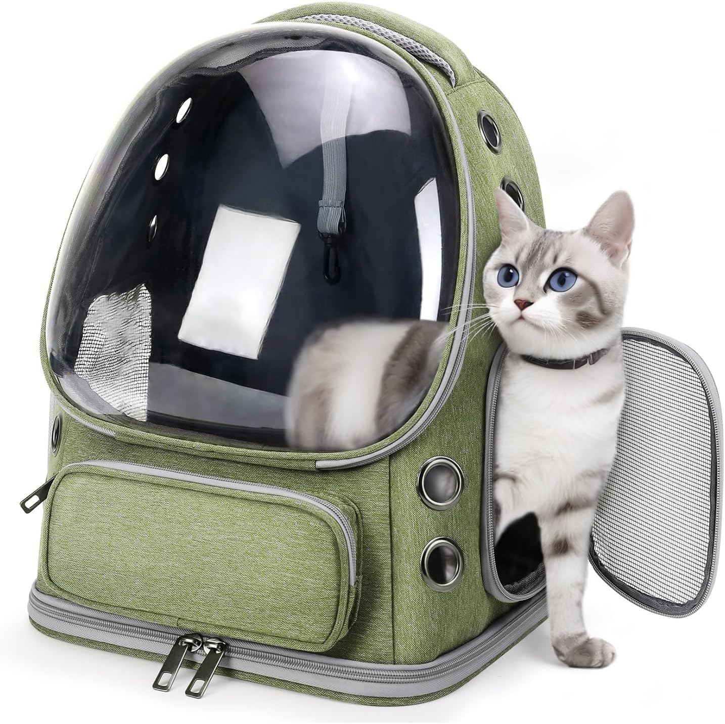 - Ventilated Bubble Design: Features a sleek, transparent panoramic bubble window for unobstructed viewing of your cat. Equipped with 10 vents to ensure optimal airflow and breathability, keeping your cat comfortable and relaxed during travel
