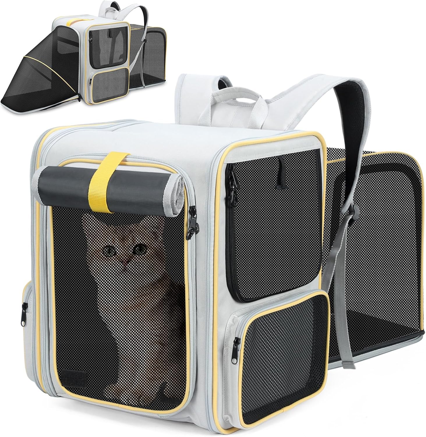 Cat Backpack Expandable Pet Carrier for Small Dogs Medium Cats Fit Up to 22 Lbs, Dog Backpack, Extendable Foldable Puppy Kitty Carrier for Travel, Hiking,Beige